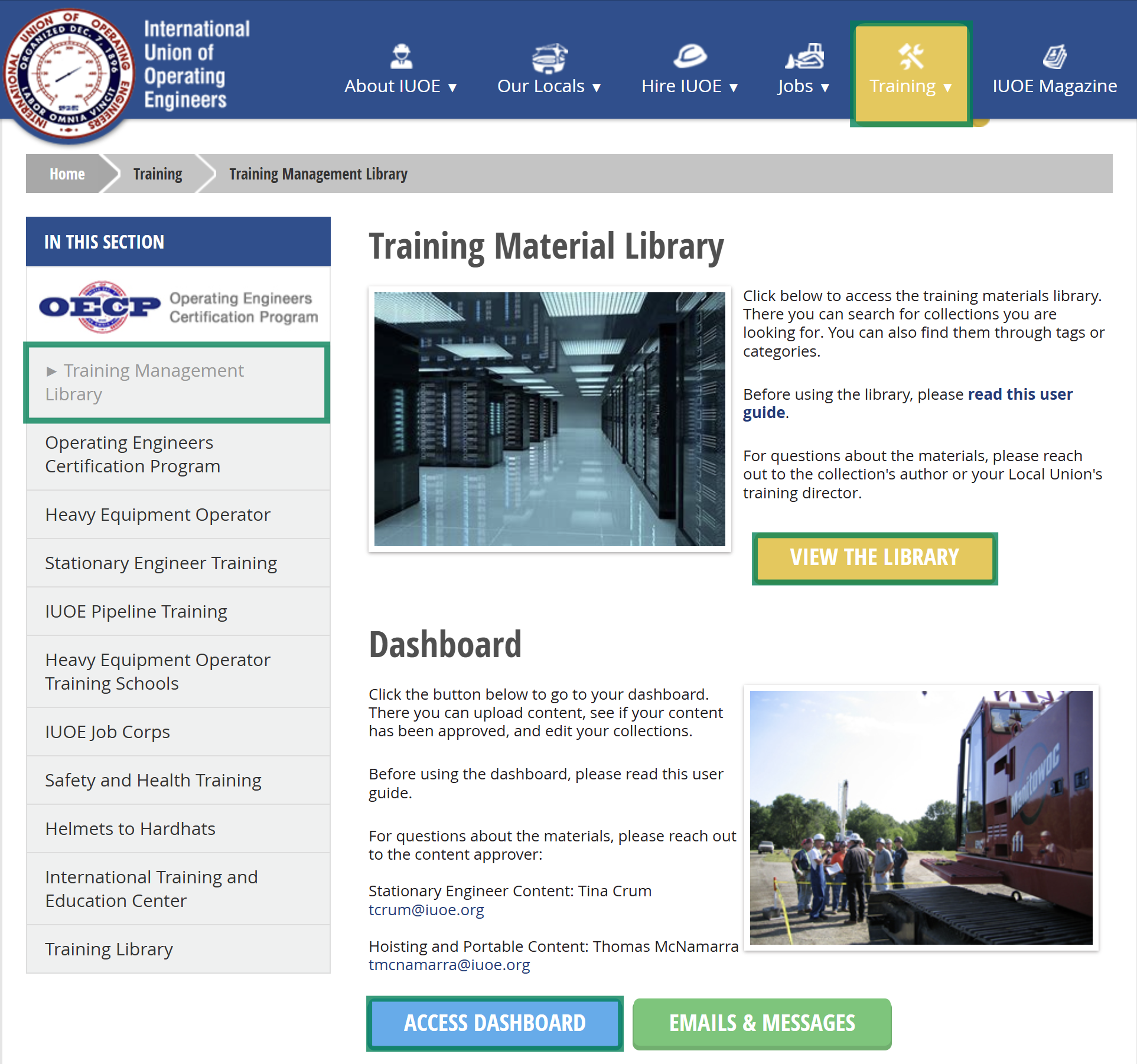 The Teaching Materials Library is located on the IUOE website (https://www.iuoe.org/). To access:
