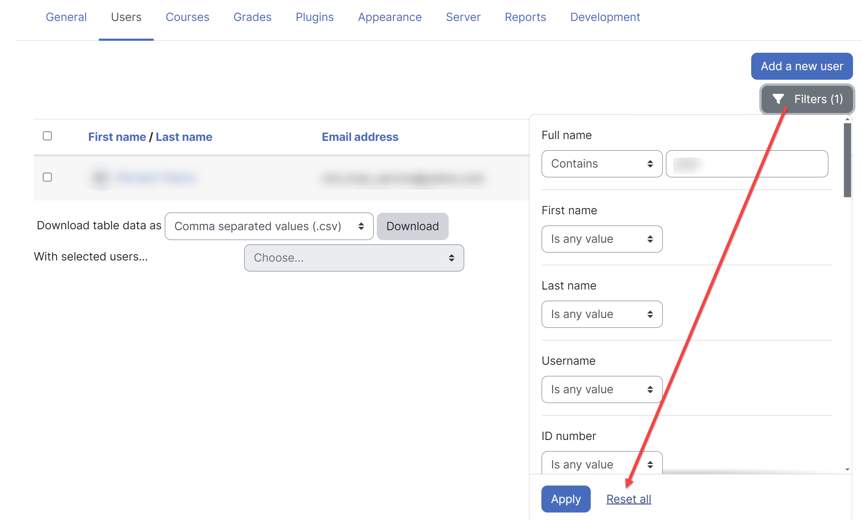 After using the search filter, you may need to reset it to return to browsing for all users.